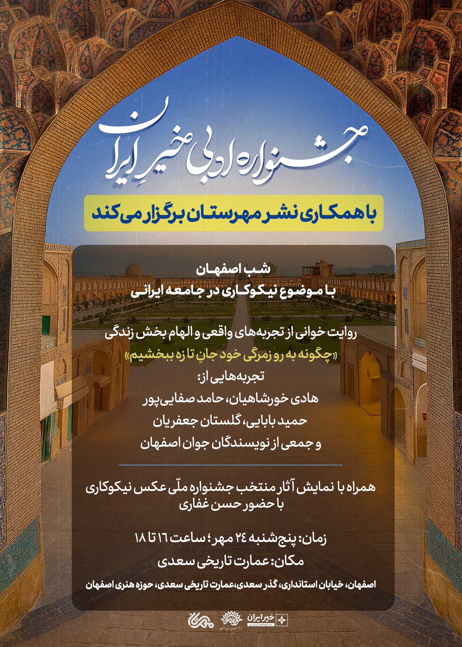 این مراسم به همت جشنواره ادبی «خیر ایران» و با همکاری نشر مهرستان برگزار میشود و فرصتی برای گفتوگو، هماندیشی و ترویج نگاه فرهنگی به نیکوکاری در بستر هنر و ادبیات فراهم میکند.
