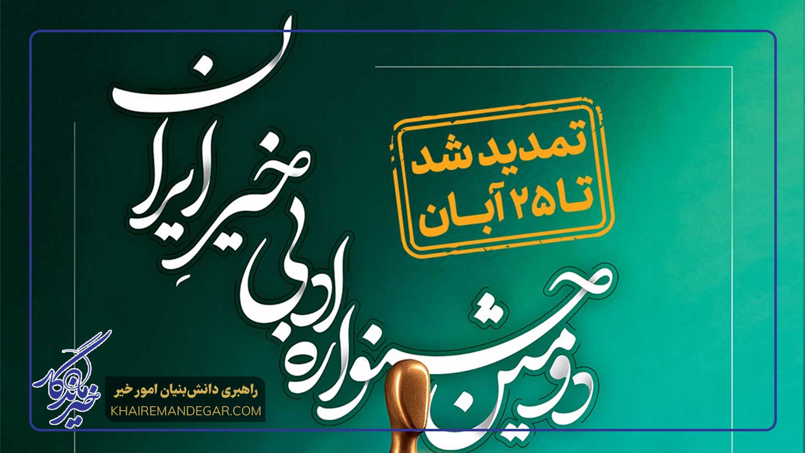 به گزارش واحد روابط عمومی خیر ماندگار، دبیرخانه دومین جشنواره ادبی خیر ایران اعلام کرد که بر اساس درخواستهای متعدد شاعران و نویسندگان جوان، مهلت ارسال آثار به این رویداد ادبی تا ۲۵ آبان ۱۴۰۴ تمدید شده است. پیش از این، آخرین مهلت شرکت در جشنواره ۱۵ آبان اعلام شده بود.