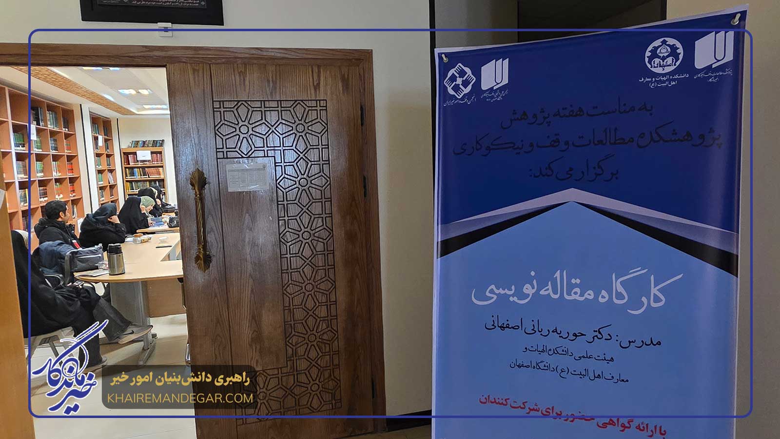 به گزارش واحد روابط عمومی خیر ماندگار، به مناسبت هفته پژوهش، کارگاه آموزشی «مقالهنویسی» روز یکشنبه ۳۰ آذرماه با تدریس دکتر حوریه ربانی اصفهانی، عضو هیئت علمی دانشکده الهیات و معارف اهلالبیت (ع) دانشگاه اصفهان، در سالن شهید حججی این دانشکده برگزار شد. این کارگاه با هدف ارتقای مهارتهای نگارش علمی دانشجویان و پژوهشگران و آشنایی آنان با الزامات انتشار مقاله در مجلات علمی طراحی و اجرا شد.